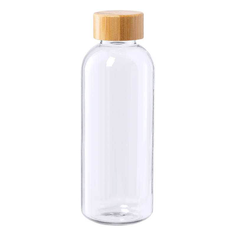 RPET fľaša s bambusovým uzáverom, 600 ml. Bez BPA. Nevhodné pre sýtené nápoje.