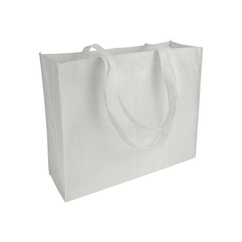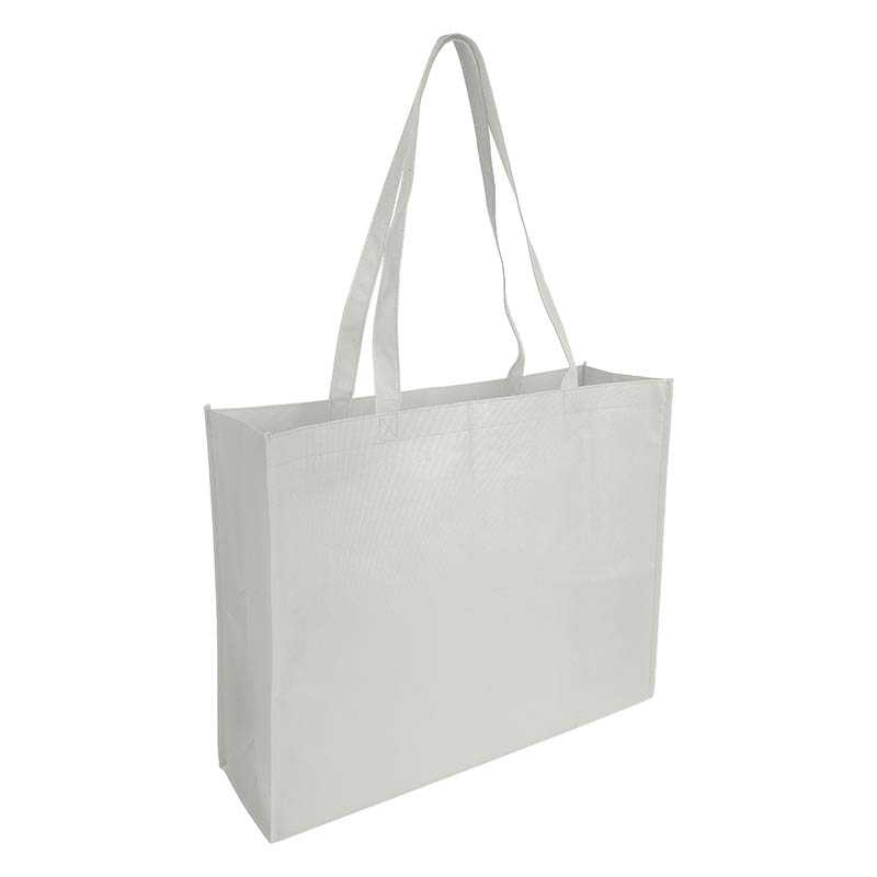 81 g/m2 R-pet shopping bag with long handles and gusset. The white color is suitable for sublimation printing