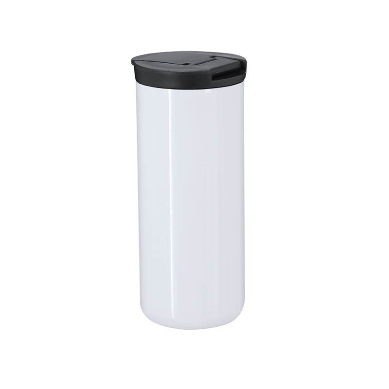 NOVINKA 2025. Thermal mug made of double-walled stainless steel with a capacity of 370ml. Specially designed for sublimation marking, finished in glossy white. Equipped with a black lid doser, designed to prevent leaks and BPA-free.