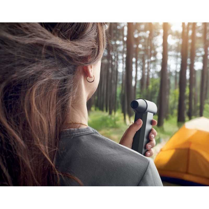 Výkonný ventilátor. Přenosný turbo ventilátor s LED osvětlením a 4 rychlosti až do 130 000 ot./min. Rychlost vzduchu 35 m/s. Vestavěná dobíjecí baterie 4000 mAh. Toto zařízení můžete používat jako ventilátor, nebo fén.
