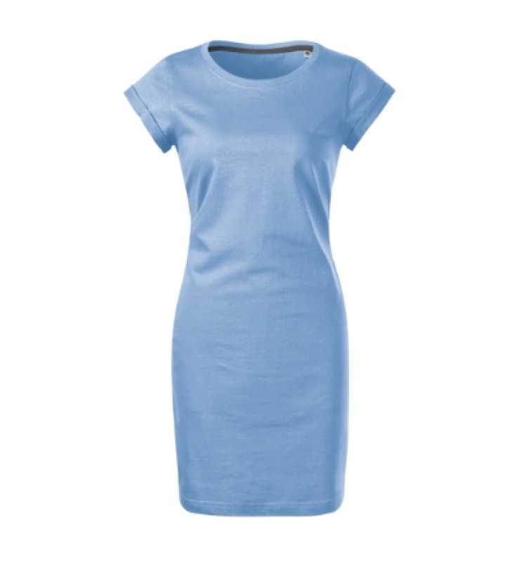 NOVINKA 2024. bez etikety - pripravené na rebranding, voľný ľahko tvarovaný strih s bočnými švami, dĺžka nad kolená, hrubší guľatý výstrih, úzky lem priekrčníka z povrchového materiálu s 5 % elastanu, neutrálny veľkostný štítok v bočnej časti priekrčníka,