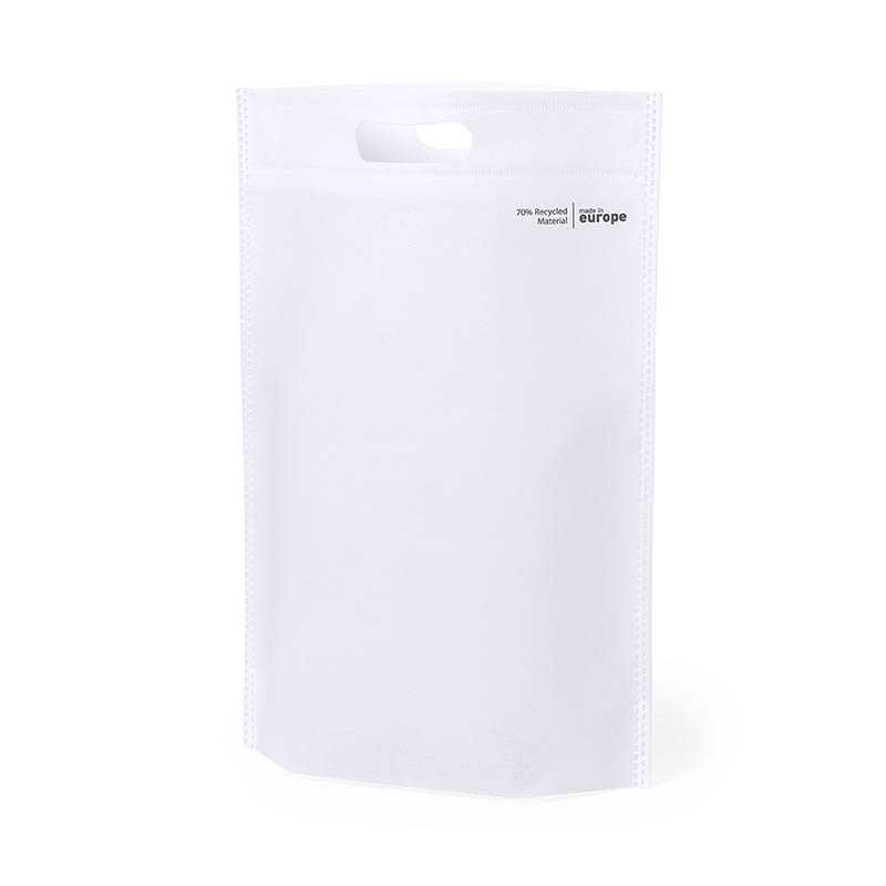NOVINKA 2025. Nature line bag, made of 70g/m2 recycled non-woven. Made in Europe, with heat-sealed finish, gusset at the base, reinforced die-cut handle and eco/made emblem on the bag.