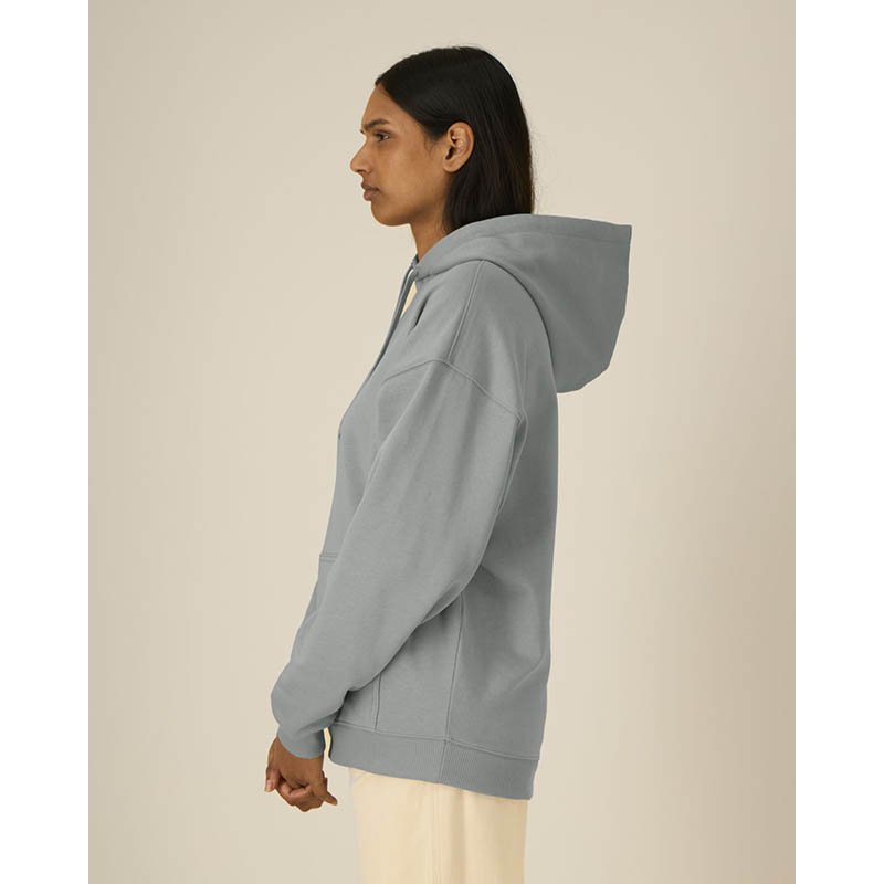 Mikina s kapucňou a česanou podšívkou. Kapucňa z dvojvrstvového materiálu so širokou šnúrkou. Vonkajšie vrecko vpredu, 2x2 rebrovanie na okraji rukáva a spodnom leme. Moderný strih. Materiál: 80% organická bavlna 20% recyklovaný polyester. Gramáž: 280 g/m2. Certifikáty: GOTS, Fairtrade Cotton, Nordic Swan Ecolabel, Oeko-Tex