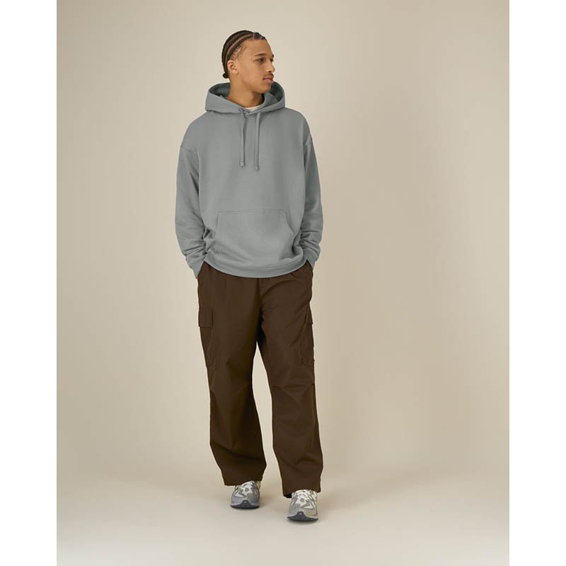 Kruhově dopřádaná bavlna. Designová dvouvrstvá kapuce. Velká klokaní kapsa. Kapsa na rukávu se zipem. Manžety ze sladěné tkaniny