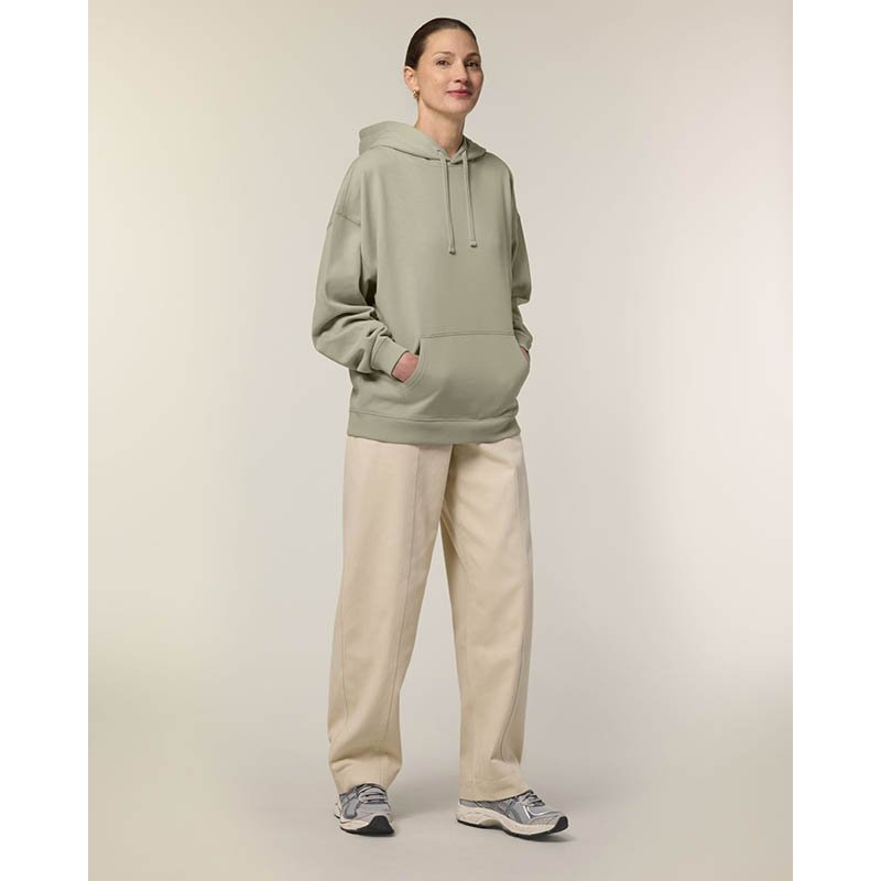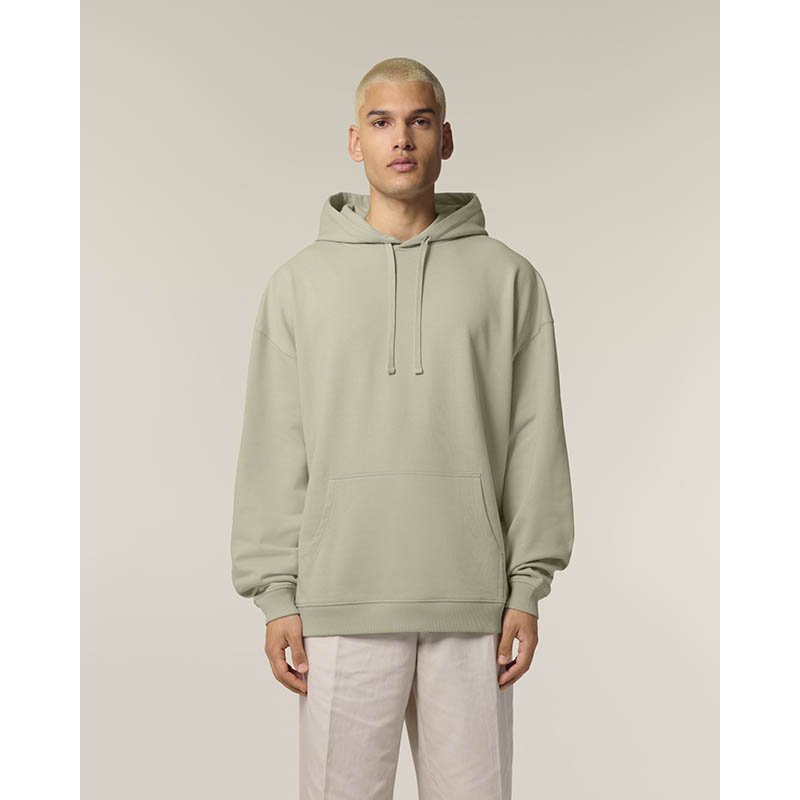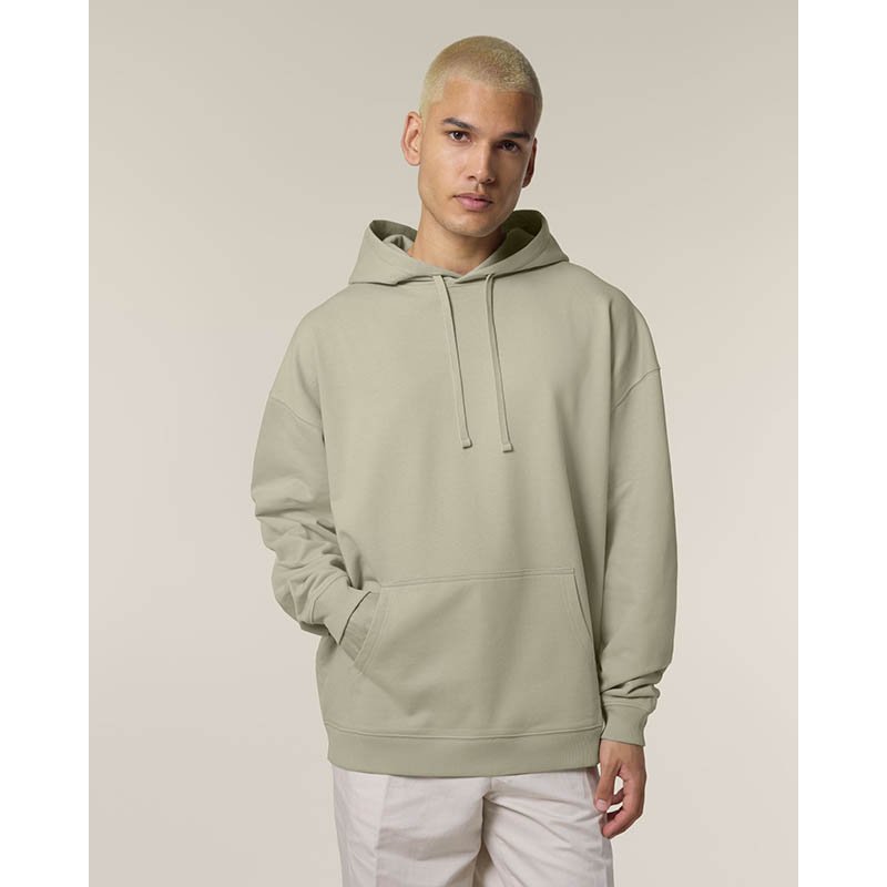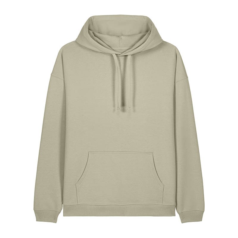 Mikina s kapucňou a česanou podšívkou. Kapucňa z dvojvrstvového materiálu so širokou šnúrkou. Vonkajšie vrecko vpredu, 2x2 rebrovanie na okraji rukáva a spodnom leme. Moderný strih. Materiál: 80% organická bavlna 20% recyklovaný polyester. Gramáž: 280 g/m2. Certifikáty: GOTS, Fairtrade Cotton, Nordic Swan Ecolabel, Oeko-Tex