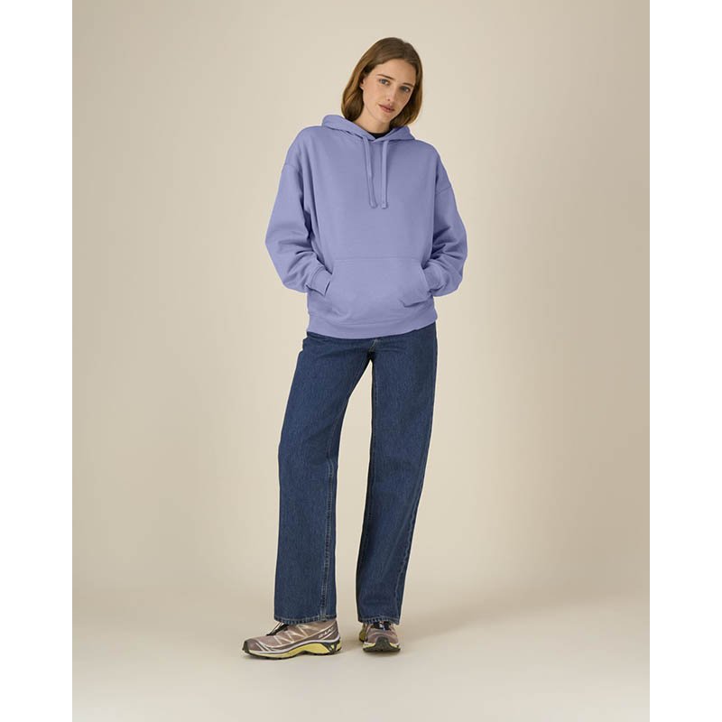 Mikina s kapucňou a česanou podšívkou. Kapucňa z dvojvrstvového materiálu so širokou šnúrkou. Vonkajšie vrecko vpredu, 2x2 rebrovanie na okraji rukáva a spodnom leme. Moderný strih. Materiál: 80% organická bavlna 20% recyklovaný polyester. Gramáž: 280 g/m2. Certifikáty: GOTS, Fairtrade Cotton, Nordic Swan Ecolabel, Oeko-Tex