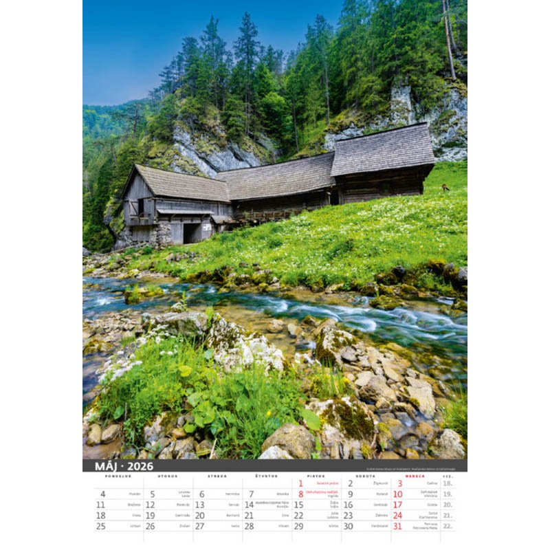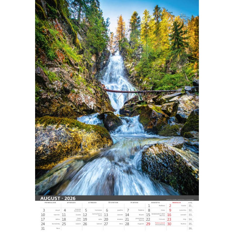 Kalendár Malebné Slovensko 2026. Formát kalendára: 45 x 31,5 cm. Kalendárium: slovenské mesačné menné. Rozsah kalendára: 14 listov. Twinová väzba. Priestor na potlač: 45 x 7 cm. Autor: Jozef Sádecký