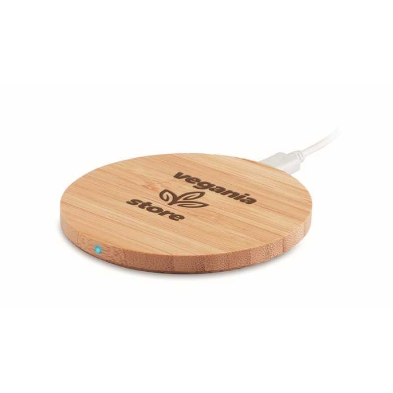 Bezdrôtová nabíjačka (5W) s bambusovým krytom. Vrátane USB nabíjacieho káblu.