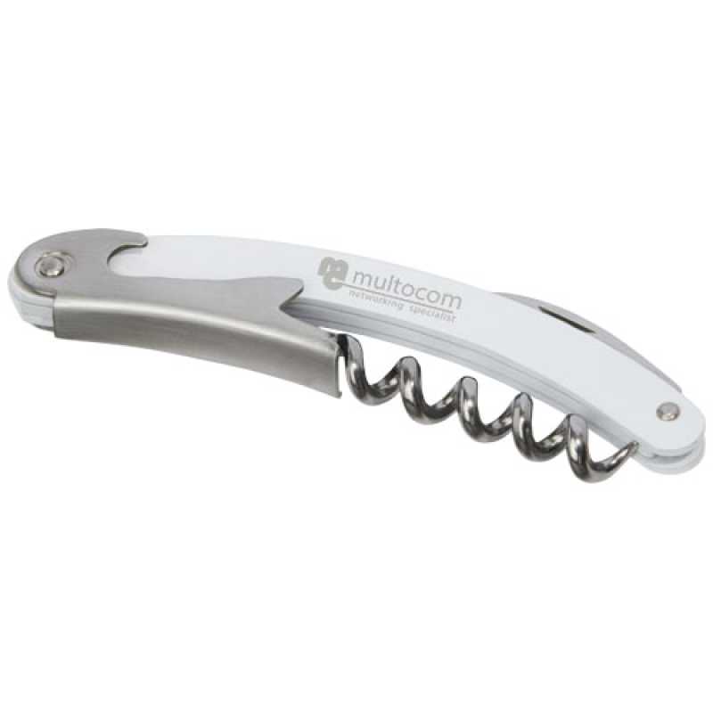 Nerezový číšnický otvírák lahví s řezačkou fólií a barevným tělem.
