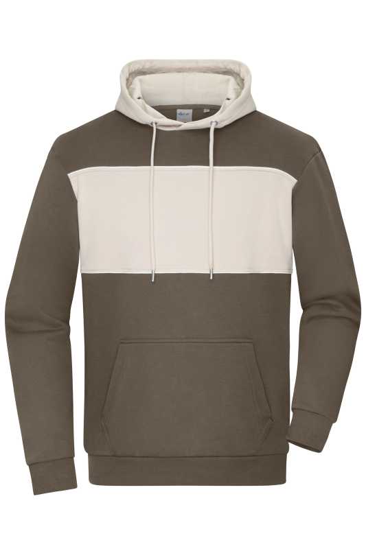 NOVINKA 2025. Unisex mikina se širokým kontrastním pruhem Kvalitní materiál v kombinaci bio bavlny a recyklovaného polyesteru Dvouvrstvá kapuce se stahováním na šňůrky Otvory na šňůrky a jejich koncovky jsou kovové Kontrastní pruh s paspulí Kapsa klokanka
