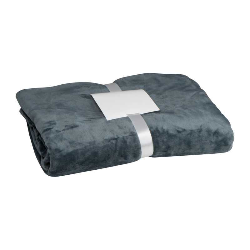 Flannel fleece (280 gr/m2) blanket with white ribbon and cardboard. Size: 120 x 150 cm.