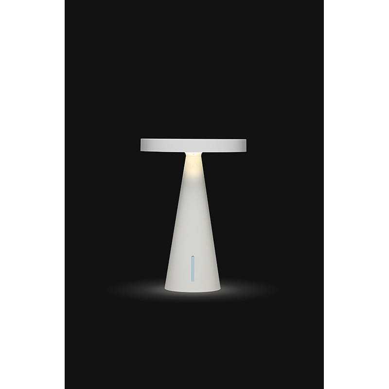 Large portable LED lamp - Cool or warm white light + 7 colors - Push activation light - Dimmer - Water resistant IPX4 - Battery life: up to 24h (tested at 75% brightness, 22°C ambient indoor temperature)Charging time: 3h - Rechargeable on USB-C port (cable included) or wirelessly - Material: aluminium / ABSSuggested branding: pad print - laser