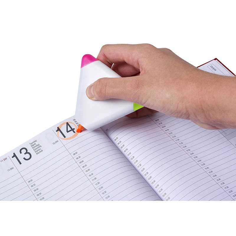 Plastový zvýrazňovač s 5 rôznymi farbami (oranžová, ružová, modrá, zelená, žltá) a veľkou plochou pre Vaše logo.