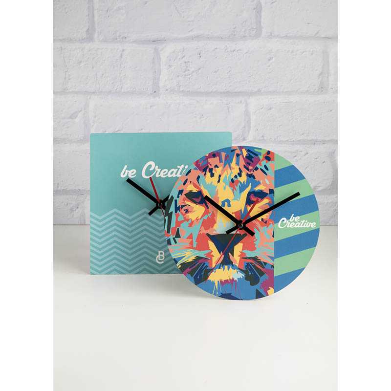 Zákazková výroba nástenných hodín okrúhleho tvaru z HDF drevovláknitej dosky s vlastnou grafikou, dodávané bez 1 AA batérie. Cena zahŕňa UV LED potlač, nezahŕňa tlačovú prípravu. Min. mn.: 50 ks.