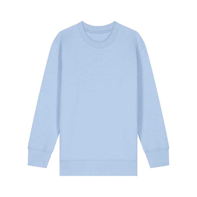Set-in sleeve 1x1 rib at neck collar, sleeve hem and bottom hem Inside back neck tape in single jersey Self fabric Half moon at back neck with 3 mm twin needle Single needle topstitch at neck collar 2 needle topstitch centered on seam at hem, cuff a