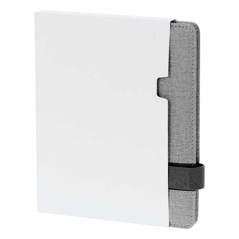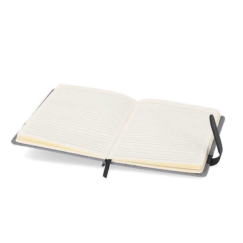 Konferenční složka A4 z plsti RPET. Poznámkový blok má 100 linkovaných listů recyklovaného papíru a gumičku na pero.