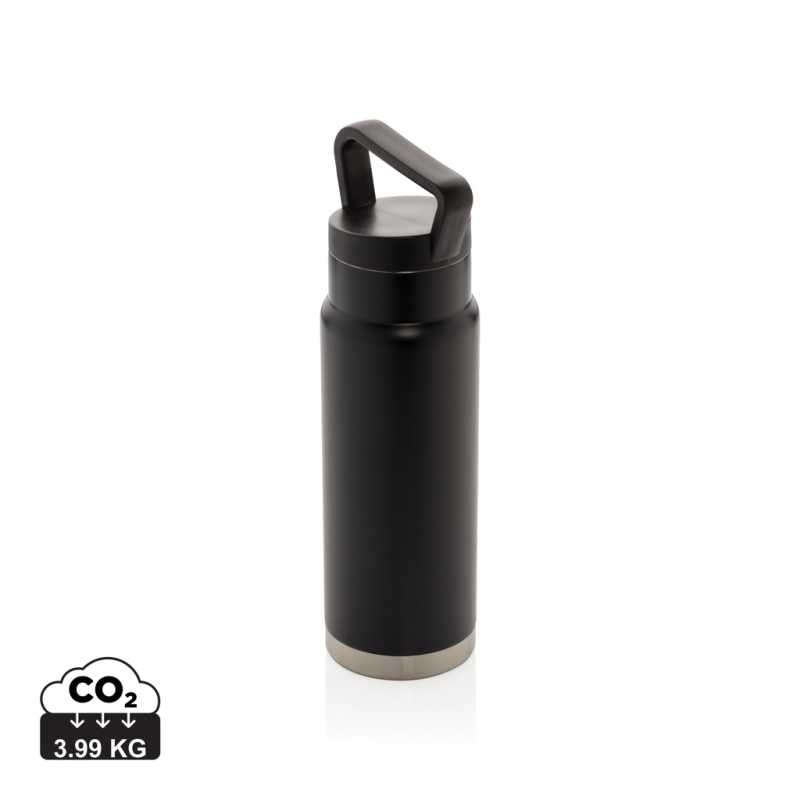 NOVINKA 2025 XMASS. Vďaka ľahkému otváraniu jednou rukou je fľaša ideálna pre životný štýl na cestách. Viečko sa ľahko čistí a telo fľaše je vyrobené z recyklovanej ocele s certifikátom RCS. Fľaša s objemom 600 ml sa dodáva v kraftovom obale s certifikáci