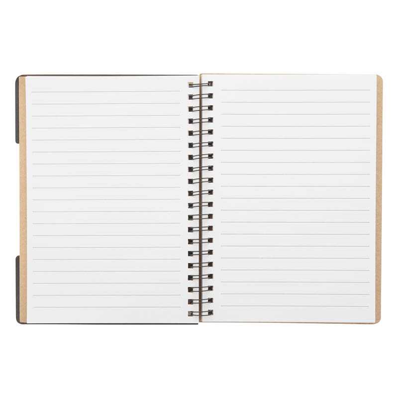 Zápisník A5 so 160 linajkovými stranami z papiera a tvrdou väzbou v kartóne. Obsahuje stužkovú záložku a farebne ladiacu gumičku. 137 x 210 mm