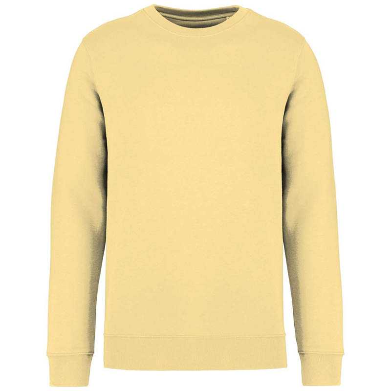 85 % organická bavlna/15 % recyklovaný polyester.Prstencovo spriadaná česaná bavlna.Rovný strih.3-vrstvový kartáčovaný flís, LSF (Low Shrinkage Fleece: predzrazený flís).1/2 kruhu vzadu.1 x 1 rebrovaný výstrih, spodný okraj a manžety.Dvojité prešívanie na manžetách, prieramkoch a spodnom okraji.Jednoduché vrchné prešívanie vo výstrihu.Podlepený výstrih vnútri na zadnej strane.
