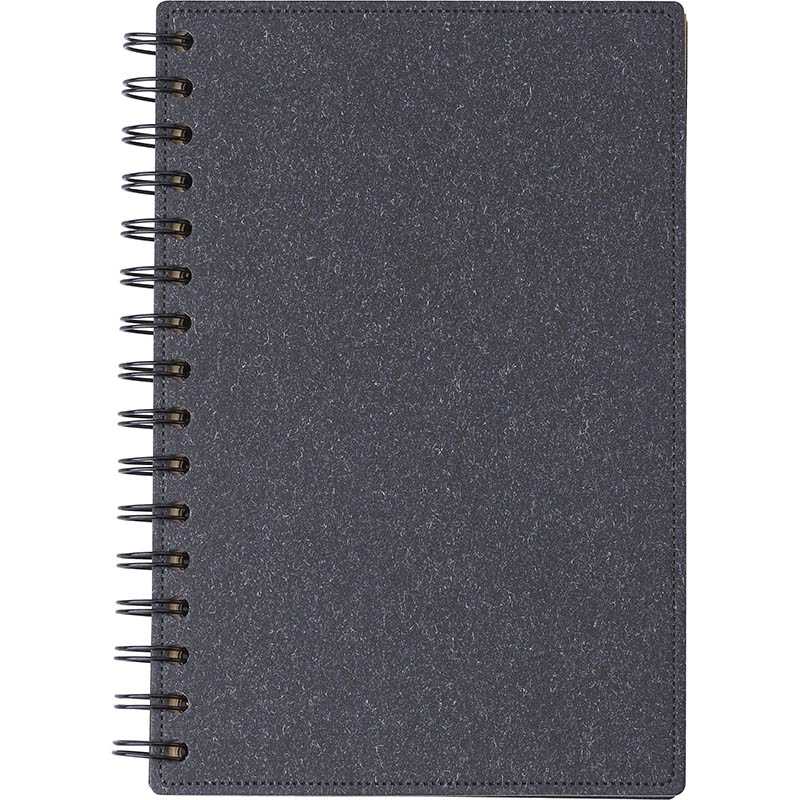 NOVINKA 2025. Ring notebook with covers in soft recycled RPET felt. Inside with 100 white sheets with single line layout. Including RPET badge. Presented in an individual recycled bag.The recycled RPET felt is the result of the combination of the recycling process of plastic materials together with the millenary technique of felt making, resulting in an eco-trend material that, besides being of recycled origin, also becomes recyclable.
