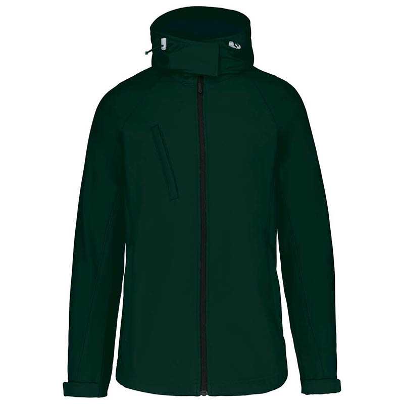 Softshell jacket 2 layers waterproof - 100% polyester - Waterproof 6000 mm/H2O - Reflective printing on arms and shoulders - Hood with drawstring - One chest pocket with zip - Two pockets with zip - Elasticized fabric on cuffs - Elasticized fabric on bottom
