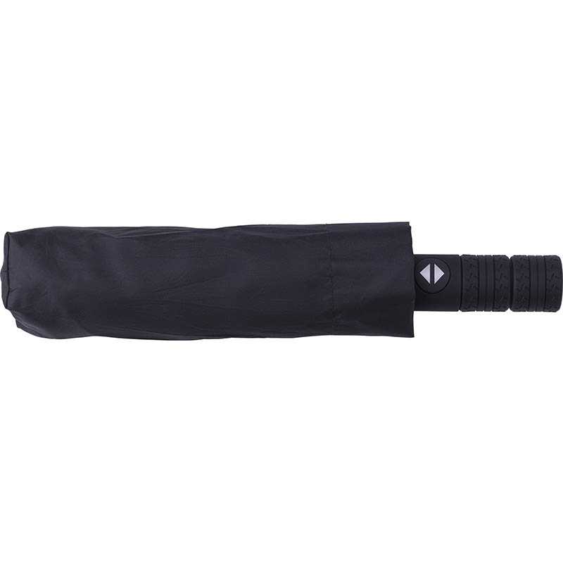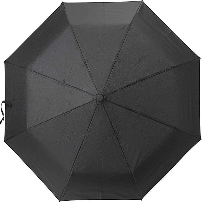 Pongee (180T) automatic, foldable umbrella with eight panels. Plastic handle and metal and fibreglass frame.