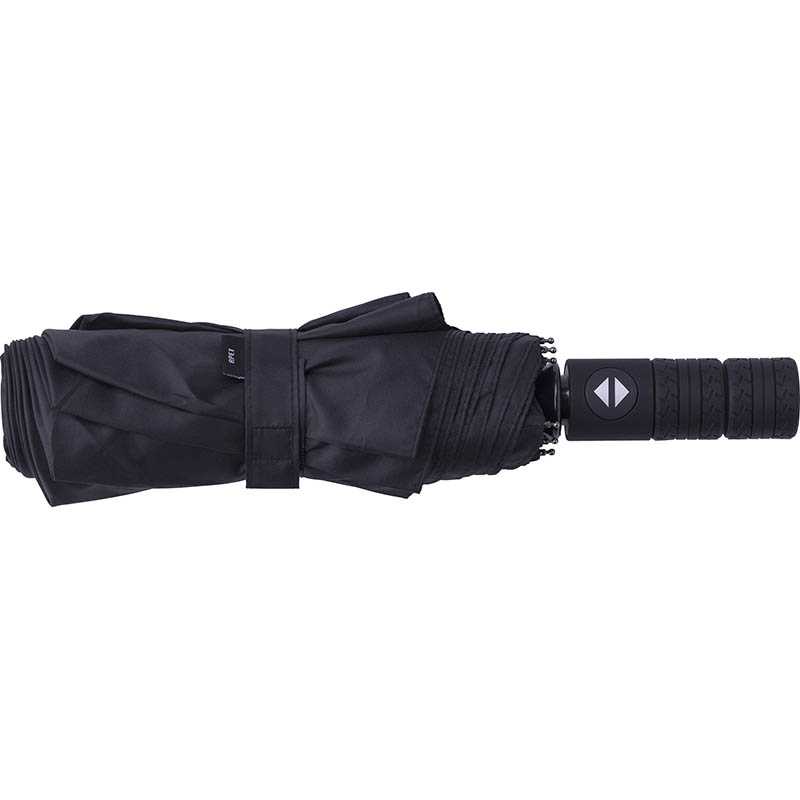 NOVINKA 2025. Plne automatický (otvoriť/zavrieť), vetruodolný skladací dáždnik s 8 panelmi v puzdre v zodpovedajúcej farbe. S kovovým rámom, sklolaminátovými rebrami a pogumovanou rukoväťou s pútkom na ruku. Pongee 190T RPET. S výrazným štítkom RPET.
