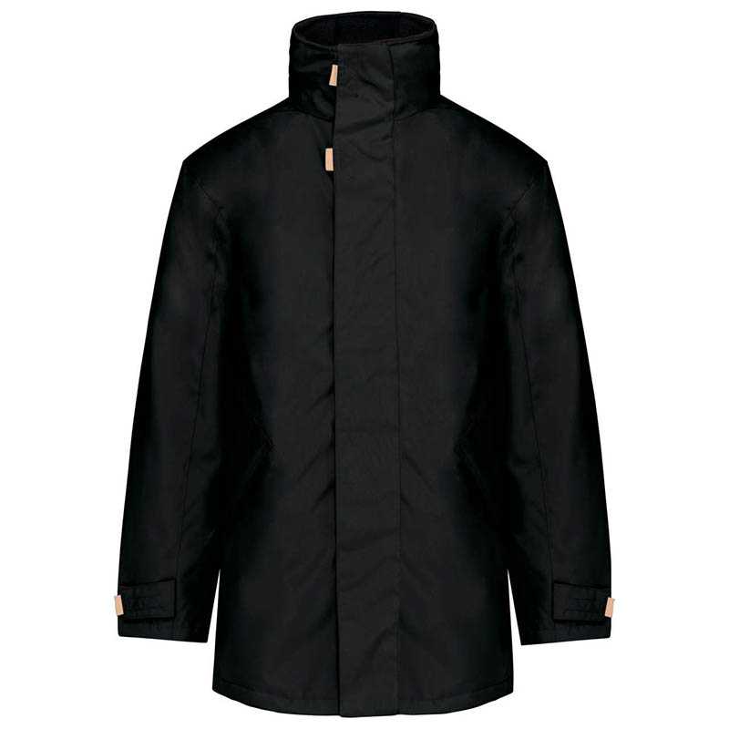 Waterproof Hooded Parka.Made of outer waterproof flat weave, smooth inner lining and inner quilting for ensuring excellent thermal insulation. Thermo-sealed seams that prevent water leaks and hidden hood that can be easily opened and closed by velcro closure and also can be used as a raincoat. Straight-cut waist with adjustable elastic drawstring and stopper, elasticated cuffs for a better fit and added comfort. Two front and two velcro flap chest pockets, an inner zippered left chest pocket for a secure and convenient storage, including a removable transparent badge holder on the left chest. Suitable marking methods: screen printing, embroidery, vinyl application.Ideal as workwear.