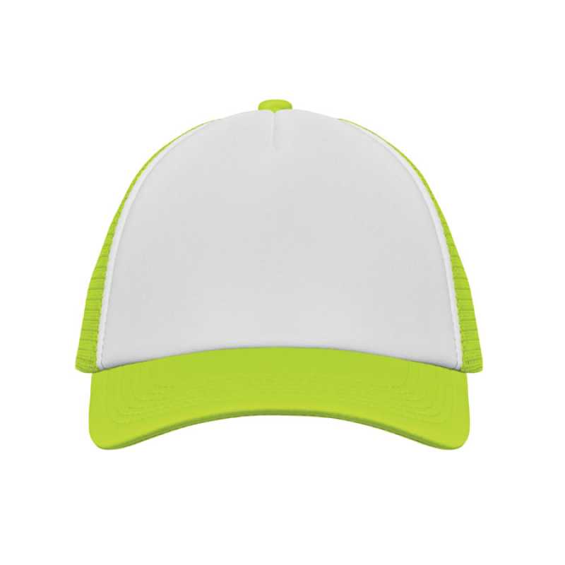 NOVINKA 2025. 5 panel cap in polyester, with mesh fabric and adjustable plastic closure. Available in a wide range of vivid colors (white color especially manufactured for sublimation printing).