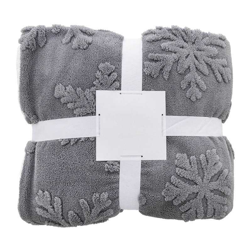 NOVINKA 2025 XMASS. Luxusná dvojvrstvová vianočná deka z RPET s žakárovým vzorom snehových vločiek. S koralovým fleecovým materiálom RPET 260 g/m2 a obojstrannou podšívkou z RPET sherpa fleecu 210 g/m2. Zabalené do stuhy a tlačiteľného papierového kartónu
