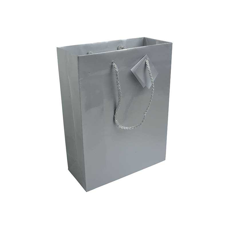 157 g/m2 laminated paper shopping bag with gusset and bottom reinforcement, string handles and greeting tag