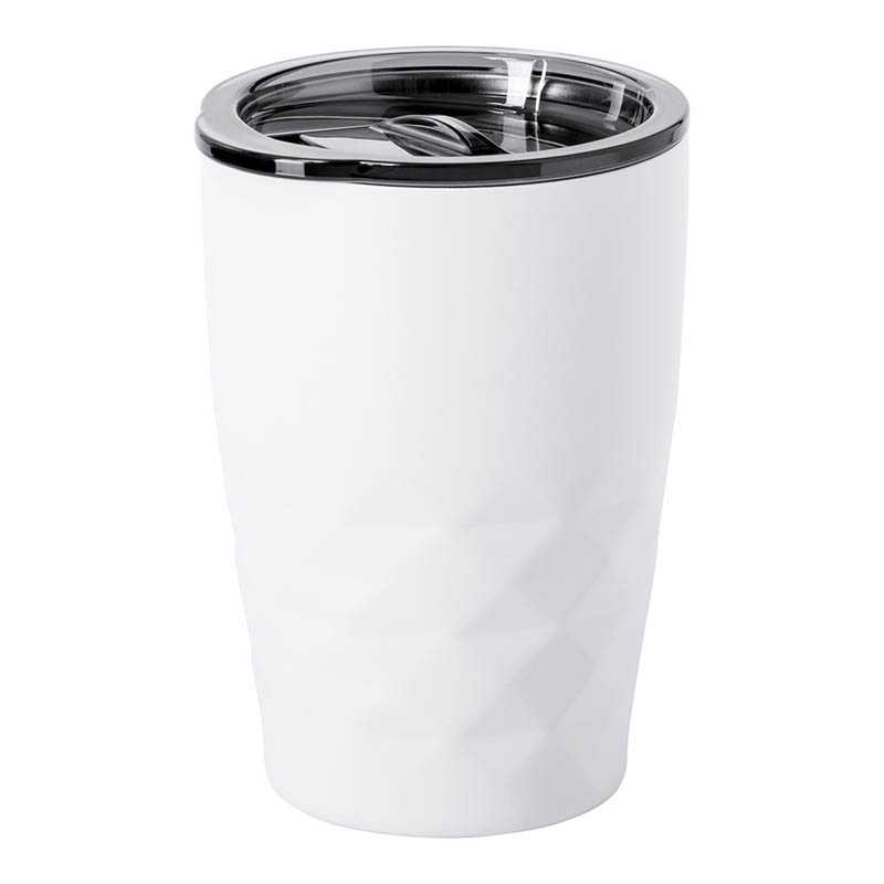 Stainless steel (s/s304) double-walled mug (380ml). The lid has a drinking opening with closure.