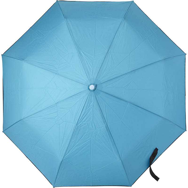 Pongee (180T) automatic, foldable umbrella with eight panels. Plastic handle and metal and fibreglass frame.