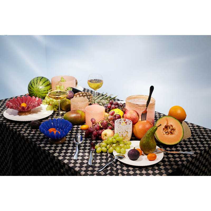 The Arlo candle holder is a playful variant of our beloved Calore. Like its cousins, Arlo is multifunctional. Use it as a vase, candle holder, or bowl. It fits everything and everywhere, especially in combination with both Lori and Lara candlesticks, where the colors are recognized. The color is classic light blue with bordeaux dots, which is also iconic for Byon. Handmade, variations in color and texture may occur. Designed by Byon Studio. Delivered in a Byon box. Material: Mouth-blown glass Weight: 600 g Width: 100 mm; Height: 100 mm; Length: 100 mm Color: light blue/bordeaux Technique Comment: Handmade, variations in color and texture may occur.