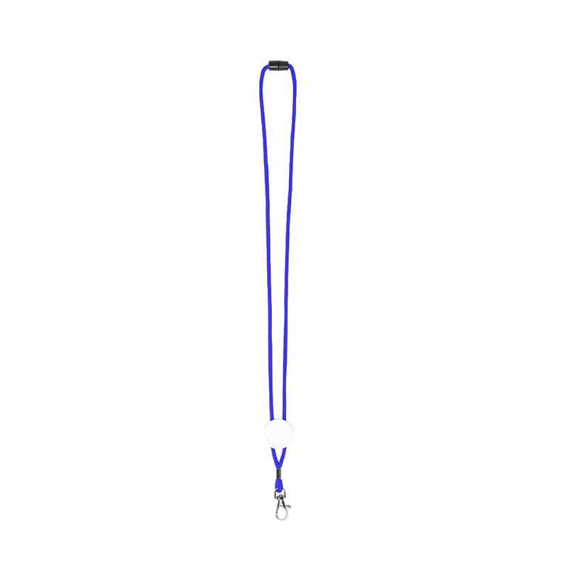 NOVINKA 2025. Lanyard in resistant and soft polyester string in a varied range of bright tones. With detachable snap closure on collar, metal carabiner accessory and central pad for printing.