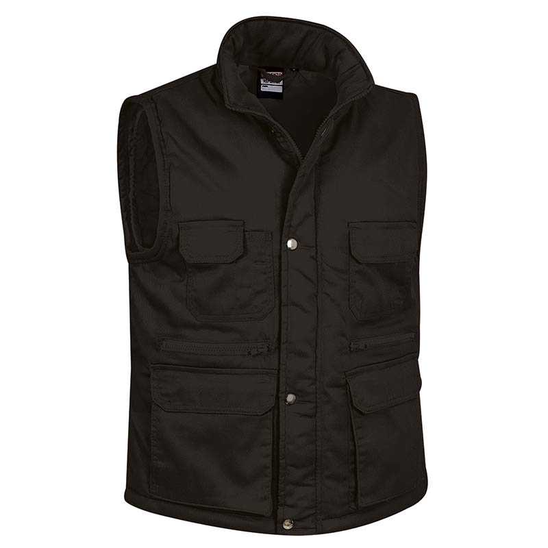 Multi-Pocket Work Vest: Our best-selling vest is a great value for money and comes in a wide range of colours and sizes. Made of a sturdy cotton twill fabric blended with polyester outer fabric for strength and durability, smooth inner lining and inner quilting for ensuring excellent thermal insulation. Stand-up collar with full-zip flap and snap button front closure, which provides warmth and comfort. Elasticated waistband and armholes for a secure and comfortable fit, adjustable waist with side snap button fastening for a better fit, a tailpiece that covers the lumbar zone for added comfort and also provides a large printing area.Two front gusseted pockets, two upper velcro flap pockets, two slanted pockets, two zippered pockets at intermediate height, a pen holder and an inner velcro pocket for a secure and convenient storage. Includes an inside back zip for easy marking with different methods: screen printing, embroidery, transfer printing, badges, shields, vinyl application. Ideal as workwear, uniforms and versatile use.