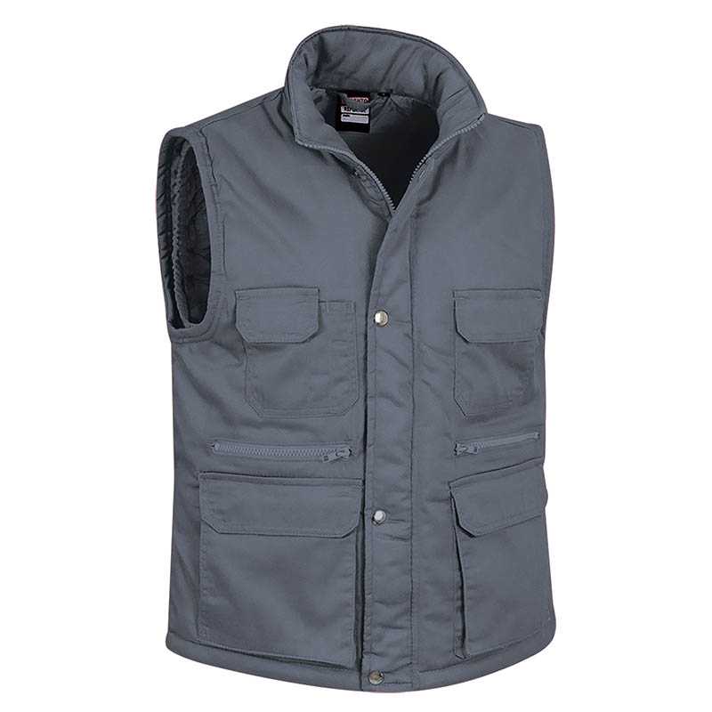 Padded and lined polyester vest with 2 zipped side pockets. Sizes: S/M/L/XL/XXL