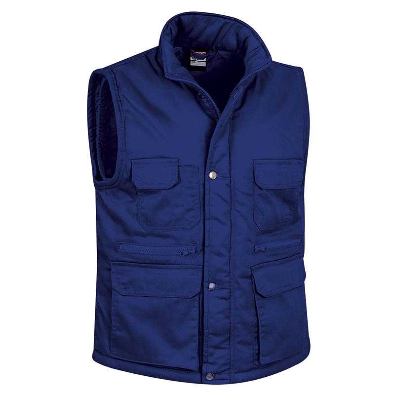 Multi-Pocket Work Vest: Our best-selling vest is a great value for money and comes in a wide range of colours and sizes. Made of a sturdy cotton twill fabric blended with polyester outer fabric for strength and durability, smooth inner lining and inner quilting for ensuring excellent thermal insulation. Stand-up collar with full-zip flap and snap button front closure, which provides warmth and comfort. Elasticated waistband and armholes for a secure and comfortable fit, adjustable waist with side snap button fastening for a better fit, a tailpiece that covers the lumbar zone for added comfort and also provides a large printing area.Two front gusseted pockets, two upper velcro flap pockets, two slanted pockets, two zippered pockets at intermediate height, a pen holder and an inner velcro pocket for a secure and convenient storage. Includes an inside back zip for easy marking with different methods: screen printing, embroidery, transfer printing, badges, shields, vinyl application. Ideal as workwear, uniforms and versatile use.