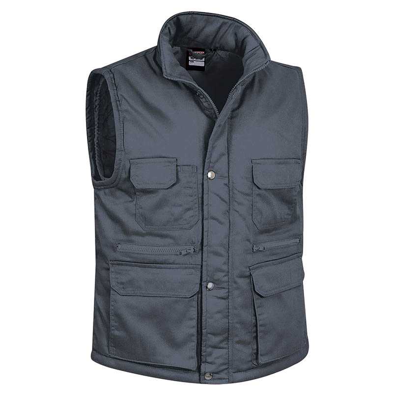 Multi-Pocket Work Vest: Our best-selling vest is a great value for money and comes in a wide range of colours and sizes. Made of a sturdy cotton twill fabric blended with polyester outer fabric for strength and durability, smooth inner lining and inner quilting for ensuring excellent thermal insulation. Stand-up collar with full-zip flap and snap button front closure, which provides warmth and comfort. Elasticated waistband and armholes for a secure and comfortable fit, adjustable waist with side snap button fastening for a better fit, a tailpiece that covers the lumbar zone for added comfort and also provides a large printing area.Two front gusseted pockets, two upper velcro flap pockets, two slanted pockets, two zippered pockets at intermediate height, a pen holder and an inner velcro pocket for a secure and convenient storage. Includes an inside back zip for easy marking with different methods: screen printing, embroidery, transfer printing, badges, shields, vinyl application. Ideal as workwear, uniforms and versatile use.