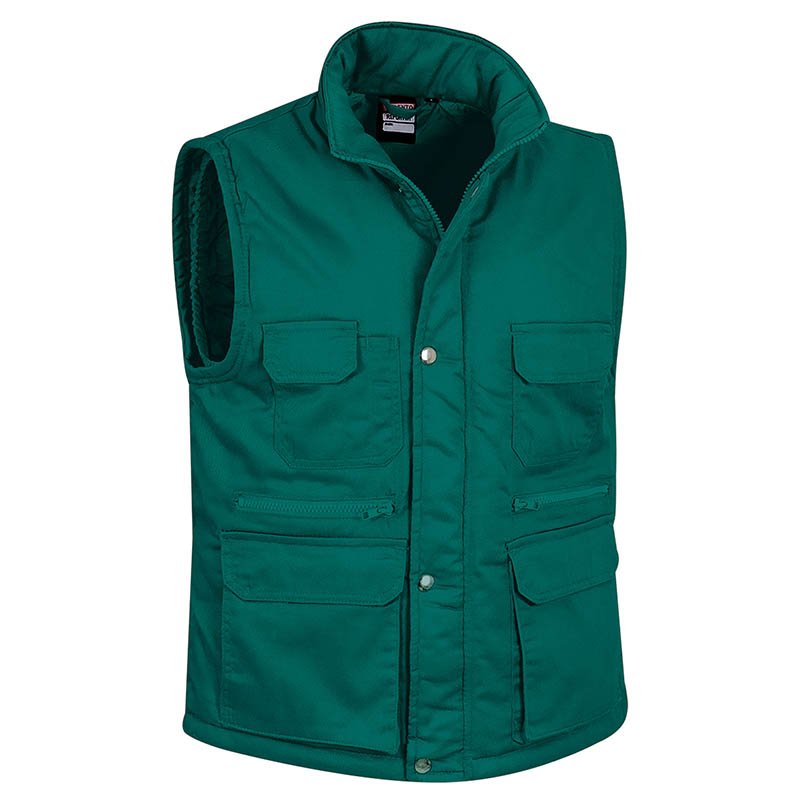Padded and lined polyester vest with 2 zipped side pockets. Sizes: S/M/L/XL/XXL