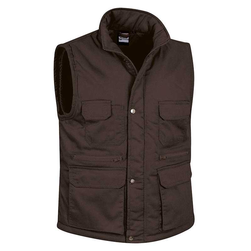Multi-Pocket Work Vest: Our best-selling vest is a great value for money and comes in a wide range of colours and sizes. Made of a sturdy cotton twill fabric blended with polyester outer fabric for strength and durability, smooth inner lining and inner quilting for ensuring excellent thermal insulation. Stand-up collar with full-zip flap and snap button front closure, which provides warmth and comfort. Elasticated waistband and armholes for a secure and comfortable fit, adjustable waist with side snap button fastening for a better fit, a tailpiece that covers the lumbar zone for added comfort and also provides a large printing area.Two front gusseted pockets, two upper velcro flap pockets, two slanted pockets, two zippered pockets at intermediate height, a pen holder and an inner velcro pocket for a secure and convenient storage. Includes an inside back zip for easy marking with different methods: screen printing, embroidery, transfer printing, badges, shields, vinyl application. Ideal as workwear, uniforms and versatile use.