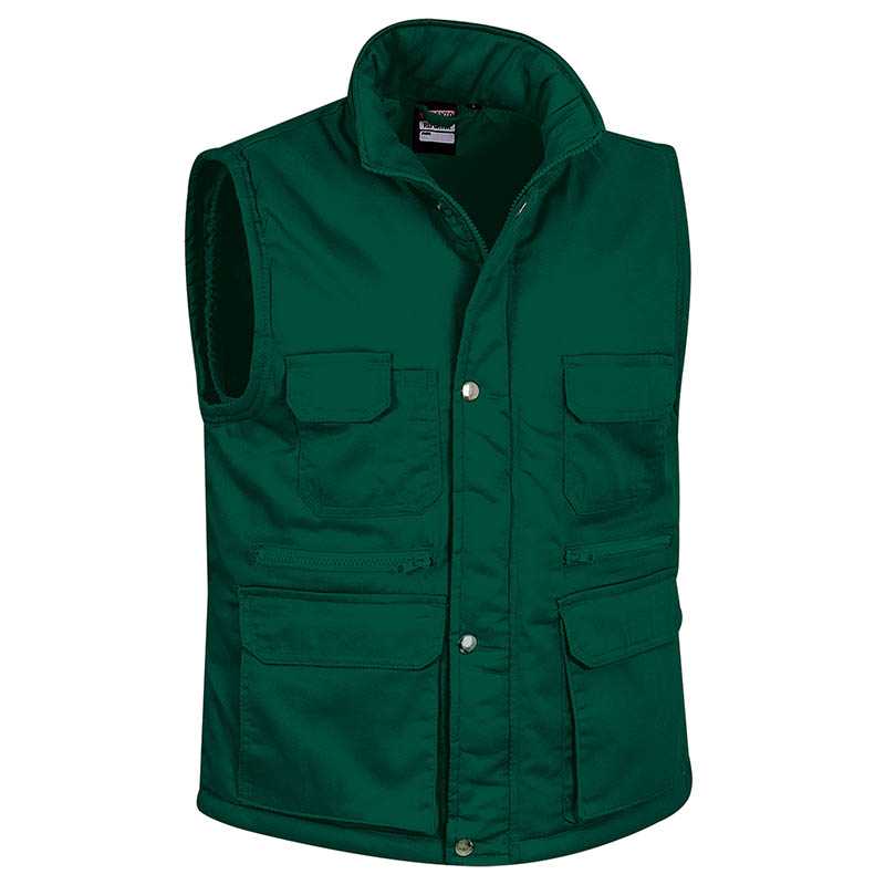 Multi-Pocket Work Vest: Our best-selling vest is a great value for money and comes in a wide range of colours and sizes. Made of a sturdy cotton twill fabric blended with polyester outer fabric for strength and durability, smooth inner lining and inner quilting for ensuring excellent thermal insulation. Stand-up collar with full-zip flap and snap button front closure, which provides warmth and comfort. Elasticated waistband and armholes for a secure and comfortable fit, adjustable waist with side snap button fastening for a better fit, a tailpiece that covers the lumbar zone for added comfort and also provides a large printing area.Two front gusseted pockets, two upper velcro flap pockets, two slanted pockets, two zippered pockets at intermediate height, a pen holder and an inner velcro pocket for a secure and convenient storage. Includes an inside back zip for easy marking with different methods: screen printing, embroidery, transfer printing, badges, shields, vinyl application. Ideal as workwear, uniforms and versatile use.