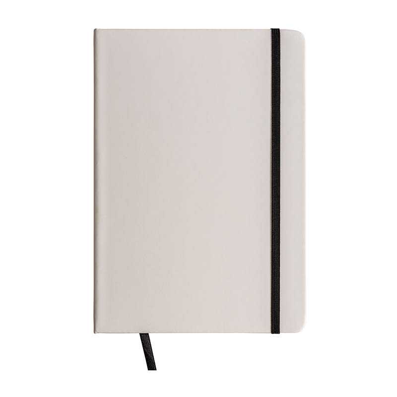 Blok potiahnutý recyklovanou PU kožou so 100 linkovanými listami z recyklovaného papiera. So záložkou v zodpovedajúcej farbe a gumičkou. Veľkosť A5.