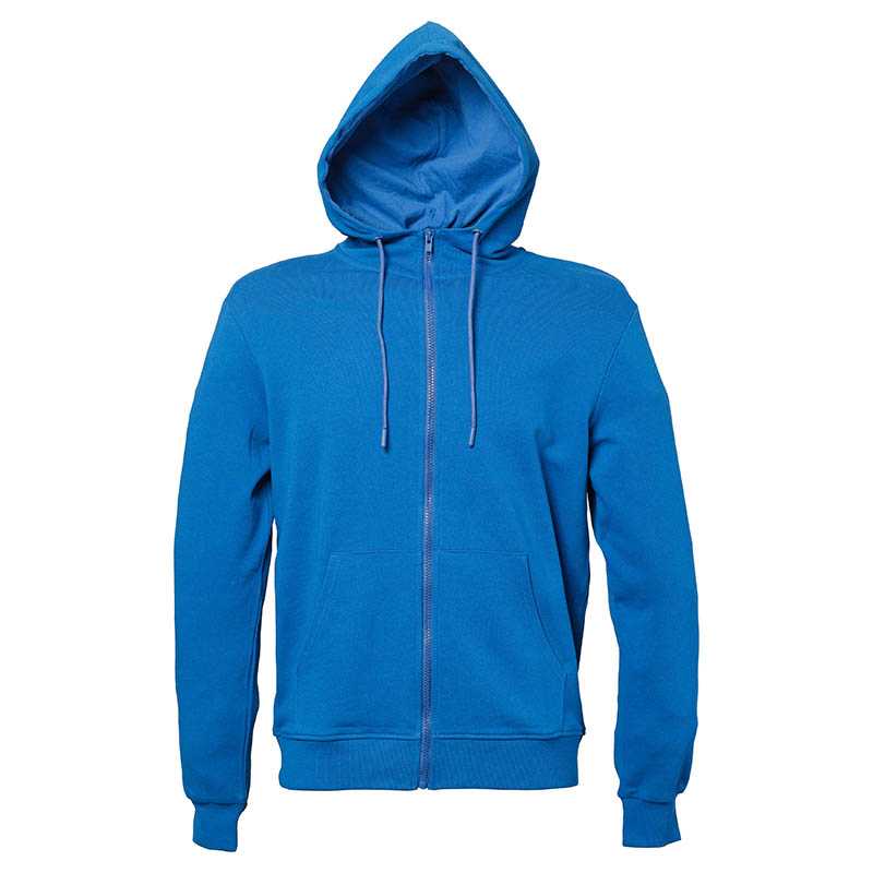 Full-Zip Hoodie with Pockets.Made of plush polyester fabric with a soft cotton-like touch for a comfortable feel with an inner brushed for optimal thermal insulation and extra comfort.Elasticated ribbed cuffs and waistband for comfortably fitting.Double layer hood with regulable drawstring for a better adjustment and a comfortable fit.Two slanted split kangaroo waist pockets for convenient storage.Suitable marking methods: screen printing, embroidery, transfer printing, badges, shields. Ideal as workwear, sportswear, casual wear and promotional clothing.