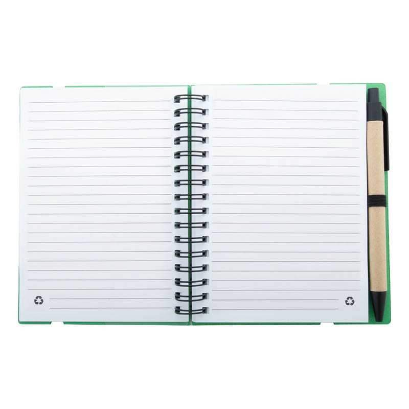 Kartónový poznámkový blok so špirálovou väzbou, 160 recyklovanými linajkovými stranami, pútkom na pero a elastickým uzáverom.