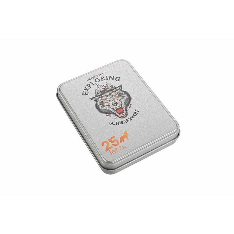 Cestovná sada hracích kariet a kociek v plechovej krabičke značky Schwarzwolf. Túto sadu určite uvítate napríklad počas vášho kempovania, kedy si s priateľmi budete môcť spríjemniť večer pri zábavnej hre alebo len tak doma s rodinou. Sada obsahuje 54 ks kariet s vodoodpudivou povrchovou úpravou, 6 hracích kociek, 15 ks poznámkových papierikov a ceruzku. Balené v darčekovej krabičke. Odporúčaná technológia potlače: laser L1, UV tlač UV2. Maximálna veľkosť potlače: 100 × 80 mm. Rozmery: plechová krabička 8,5 × 11 × 2 cm, karty 6,2 × 8,7 cm. Uhlíková stopa: gCO2 e838.