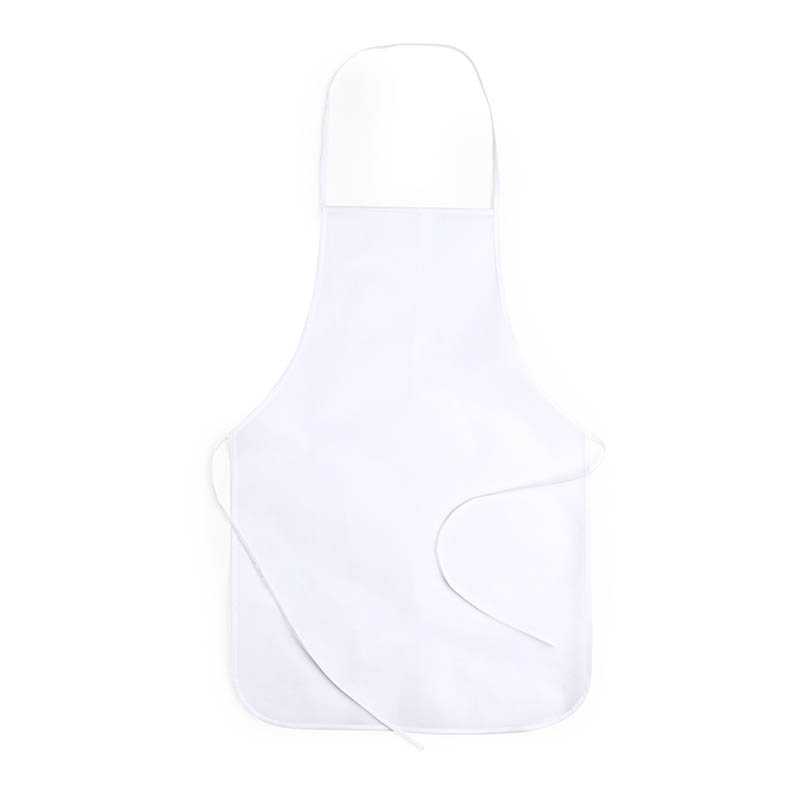 Bílá zástěra z netkané textilie, ideální pro sublimační potisk.