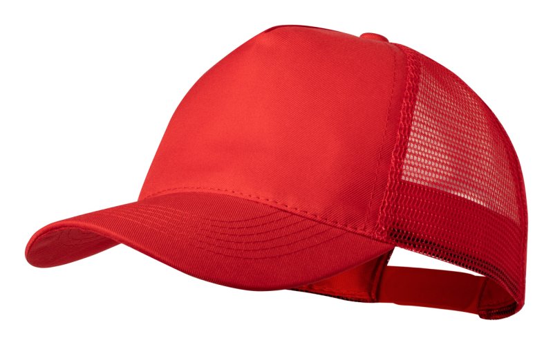 5-panelová polyesterová šiltovka so zadným dielom zo sieťoviny a veľkostne nastaviteľným plastovým pásikom.