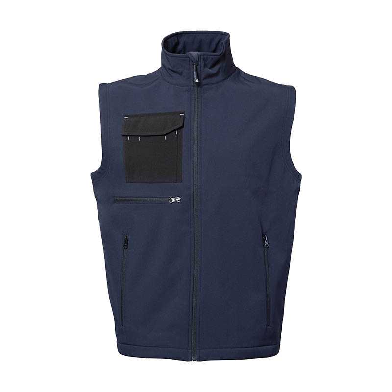Softshell vest based on same as the jacket in bounded fabric with stretch capabilities. Two coloured zipper at front and pockets. Possible to add zip pullers in other colours matching the company logo. // 96% POLYESTER/ 4% SPANDEX, BRUSHED INSIDE // 400 RED, 600 NAVY, 632 OCEAN BLUE, 728 FRESH GREEN, 900 BLACK, 935 STEEL GREY, 100 WHITE S - 5XL