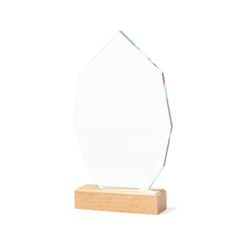 NOVINKA 2025. Commemorative plaque made of thick and resistant glass, with a natural wood base. Presented in a kraft protective case, with magnetic closure and foam inside.
